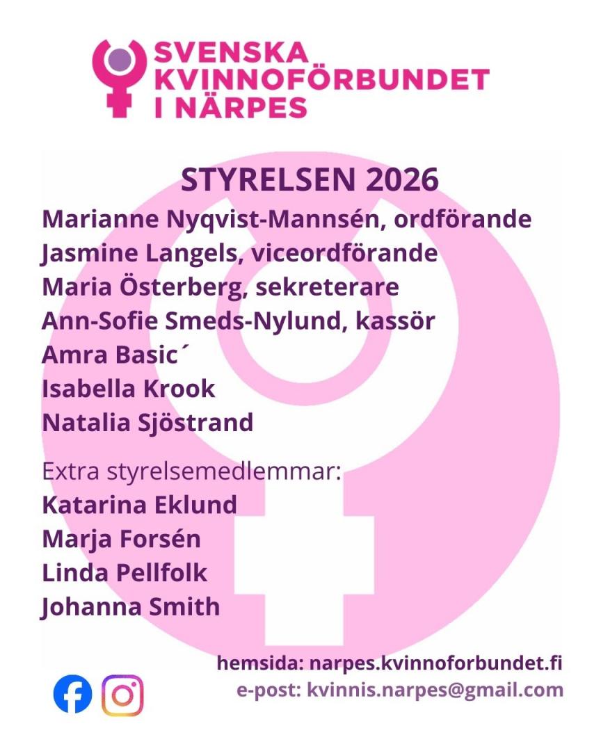 Före själva årsmötet fick vi information av kretsordförande Roberth Sjöström om aktualiteter från kretsstyrelsen. Bl.a om kandidatnomineringen inför riksdagsvalet 2027 och om kretsstyrelsens planerade stadgeändring gällande kretstyrelsens sammansättning i framtiden. Förslaget till stadgeändring har väckt oro inom vår förening för det skulle bl.a. ändra på kvinnoförbundets ställning och status i kretsstyrelsen. Ärendet kommer upp till behandling och avgörande på Sfp Österbottens kretsmöte i Karleby den 11.4.