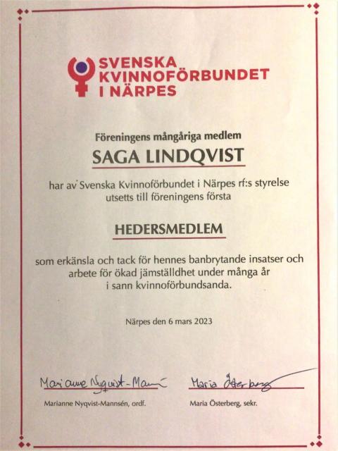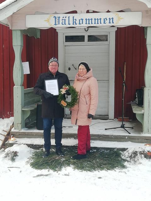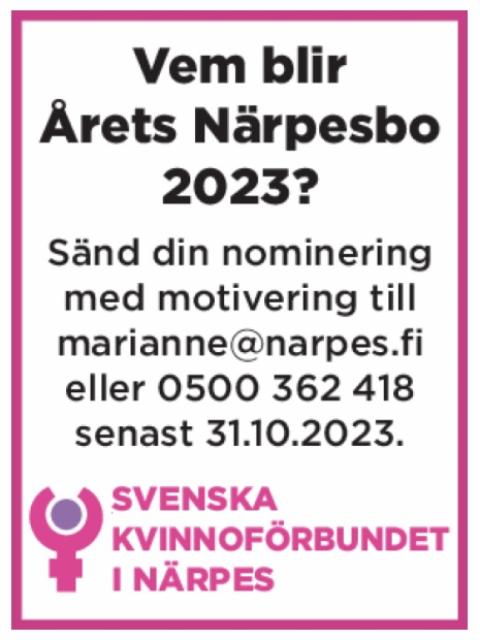 Harry Westerback, den tjänstvillige biblioteksfunktionären och föraren av bokbussen Läslyckan, har av styrelsen för SKvF Närpes utsetts till Årets Närpesbo 2023. Harry uppvaktades med diplom och julig krans till titeln på Jul i Öjskogsparken-eventet den 2.12. 2023.