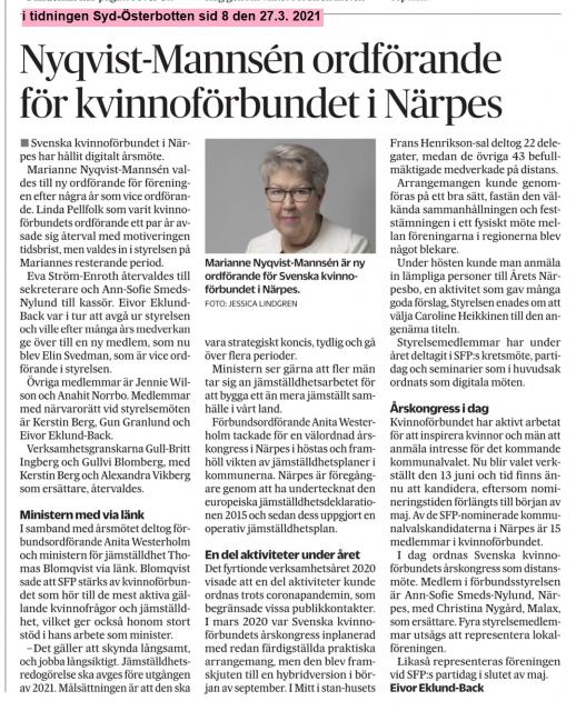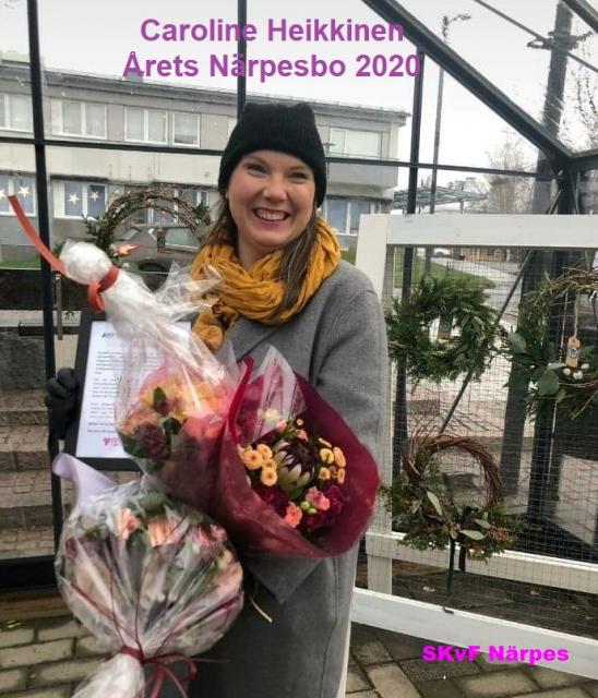 Bland tiotalet goda förslag har styrelsen för kvinnoförbundet i Närpes utsett Caroline Heikkinen till Årets Närpesbo 2020. Caroline uppvaktades och gratulerades till titeln av styrelsen vid en ceremoni den 21.11. på Närpes torg.