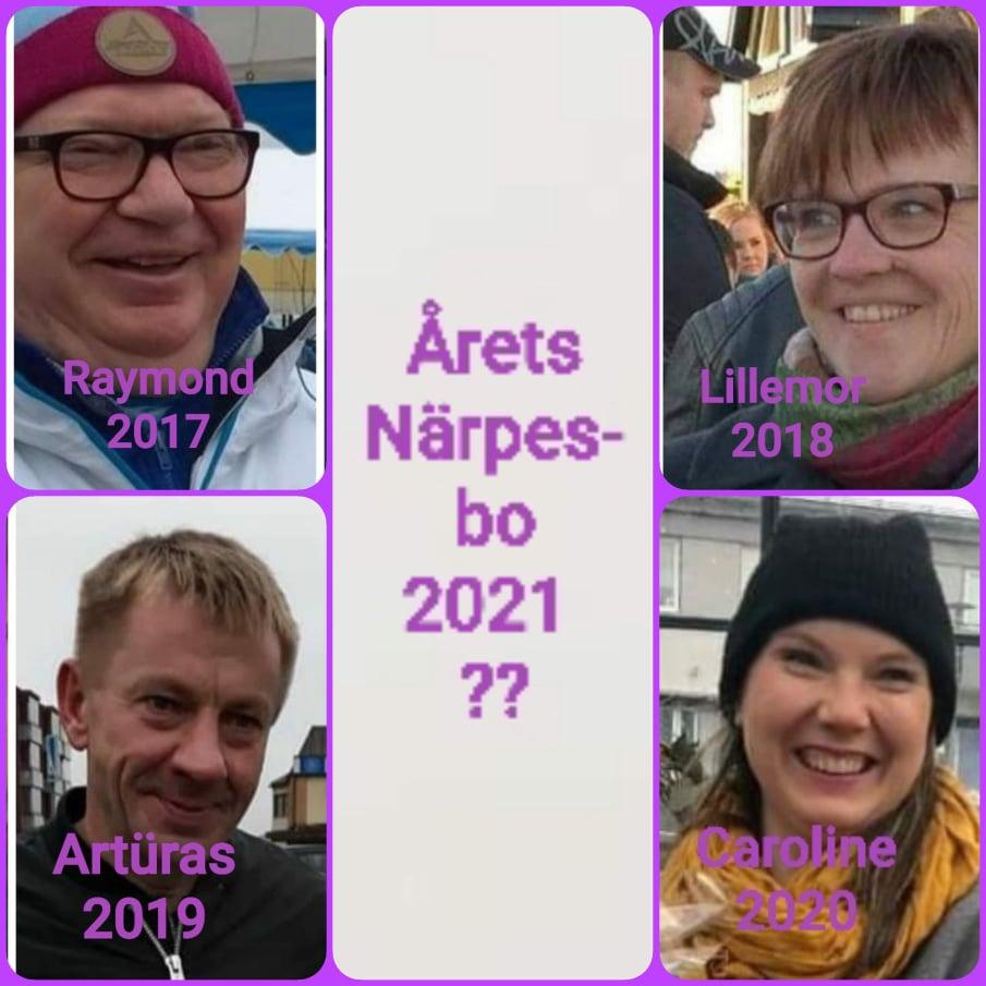 Utgående från de förslag som inkommit väljer styrelsen för SKvF Närpes i november Årets Närpesbo 2021. Utmärkelsen offentliggörs och mottagaren uppvaktas i slutet av året vid något lämpligt publikt tillfälle.