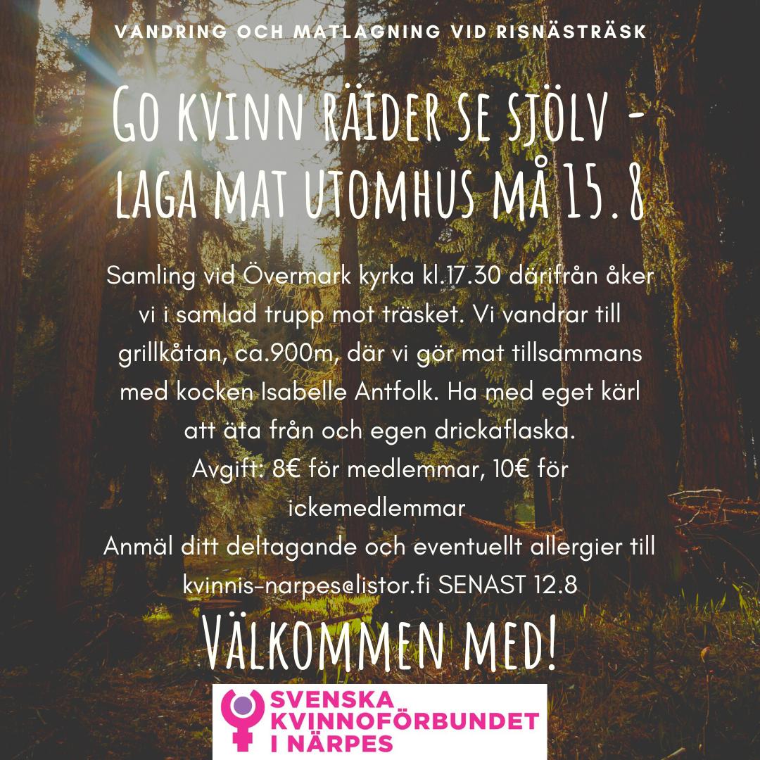Anmäl ditt deltagande och eventuella allergier till kvinnis-narpes@listor.fi senast den 12.8.